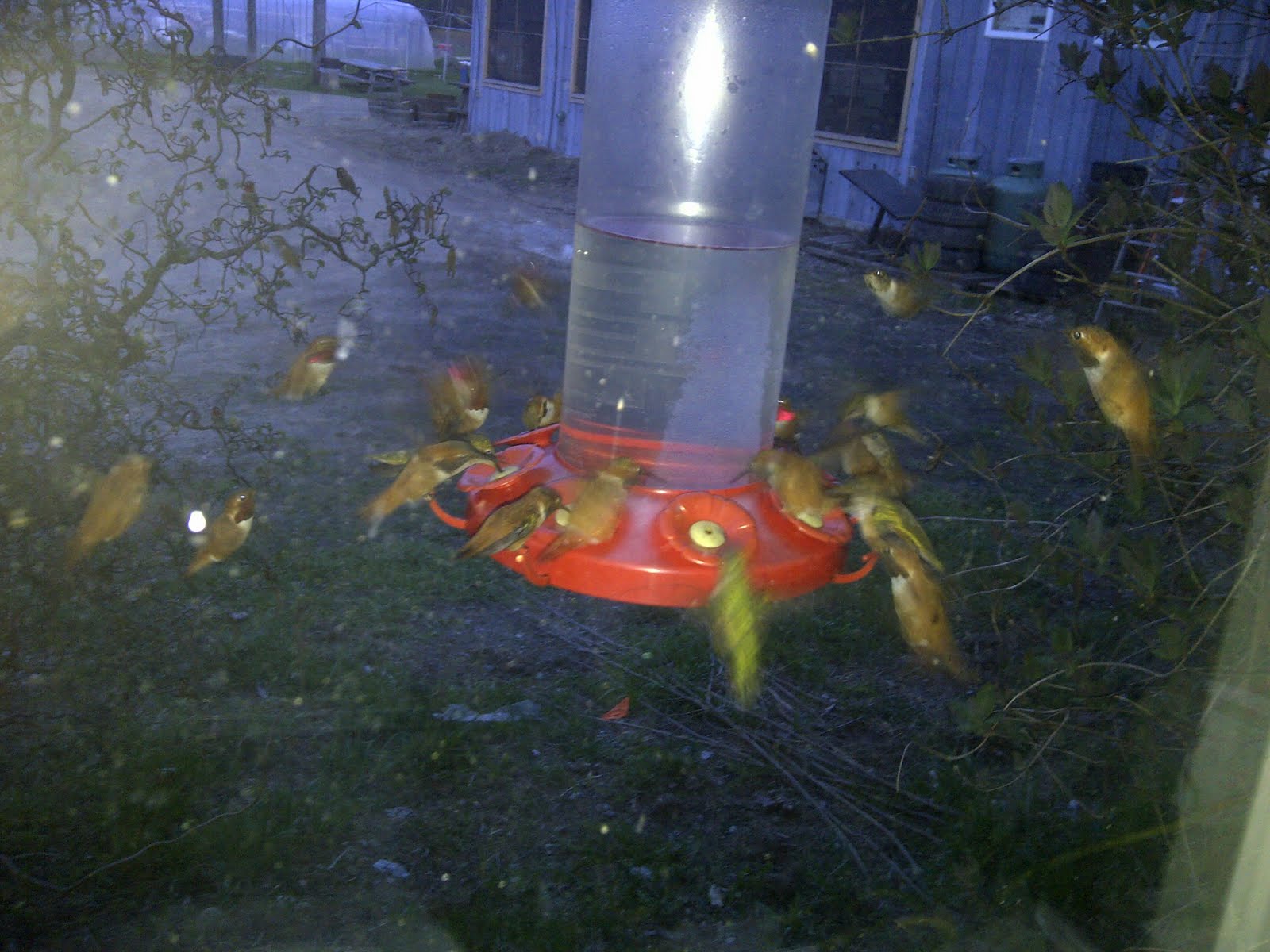 I haven’t ever put in a hummingbird feeder – I don’t want to give the bears any more reason to come check out my garden, and there’s a little part of me that feels like I’m feeding junk food to them by filling up feeders with sugar syrup… So I’ve been stoked this week to discover a few resident hummingbirds (Selasphorus rufus) who have developed a healthy addiction to my nasturtiums.