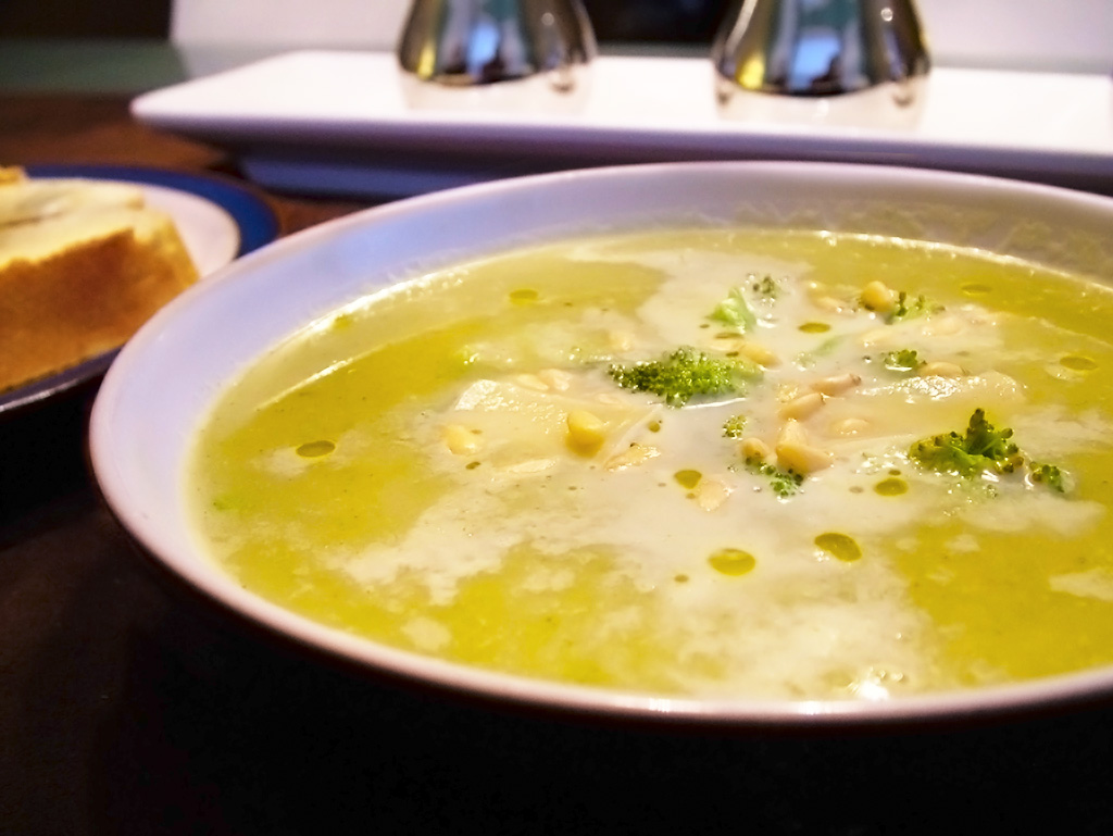 Having always wanted to try and make Broccoli and Stilton Soup (but not being very fond of the Stilton bit!), I stumbled upon this – Creamy Broccoli and White Bean Soup – which sounded very interesting. And yes, it was good, especially with a hunk of freshly baked bread!