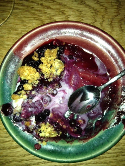 The photo of the crumble is an “after” photo, not a “before” shot, because, well, Huckleberry Crumble waits for no photographer.