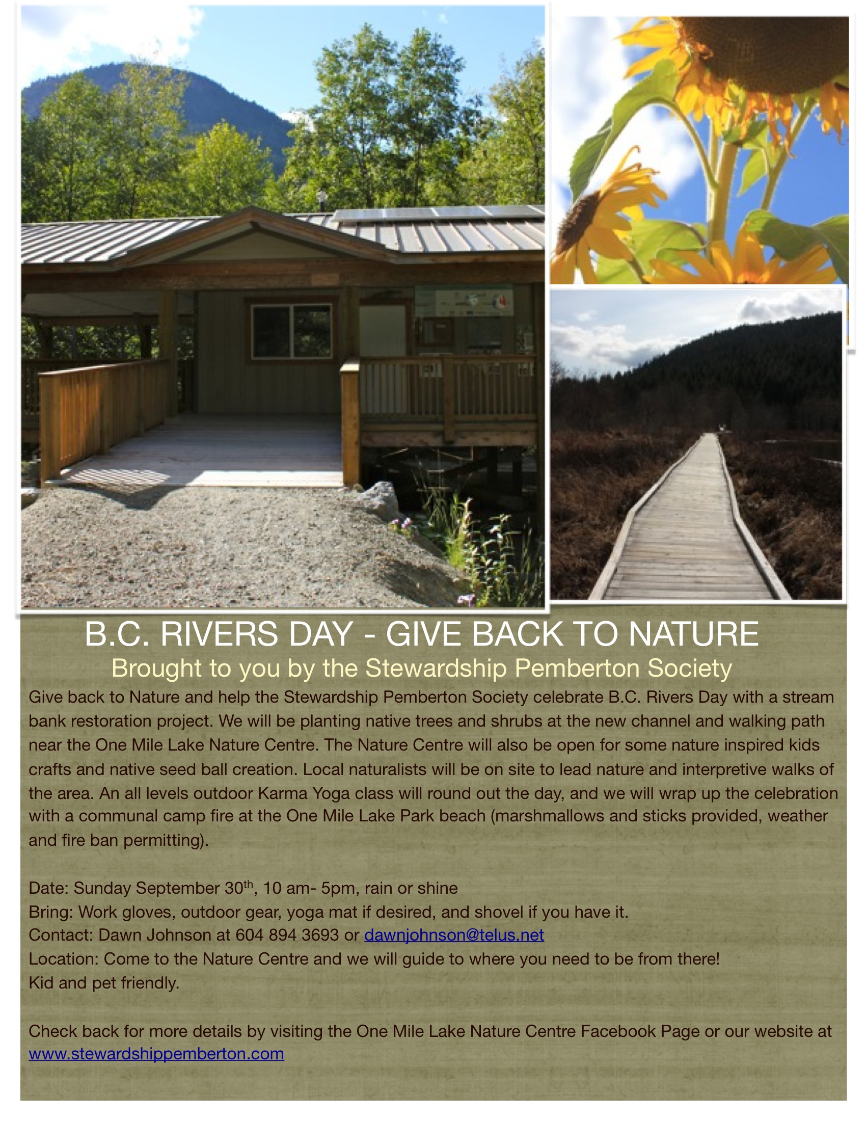 Check back at Stewardship Pemberton’s new website for more details, including walking tour and yoga class times.