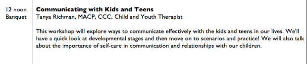 Tanya, a Child and Youth therapist, will explore ways to communicate effectively with kids and teens, based on developmental stages and some hands-on scenarios to practice!