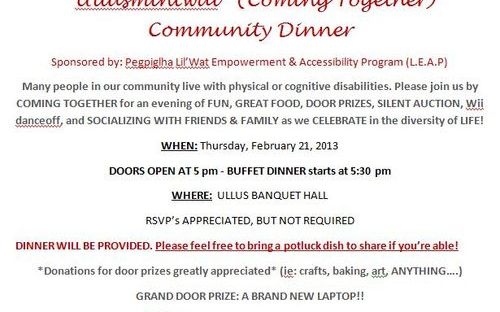 Event: Ullusmintwal (Coming Together) Community Dinner, Feb 21, 5pm