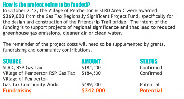 The critical piece of the Friendship Trail is the multi-use bridge over the Lillooet River.