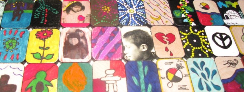 The Project of Heart also invites the individual sessions to research one particular Residential School and finish the evening by decorating a small wooden tile to commemorate a child who died in that school. The tiles get sent to a central location and will eventually end up on display at the Human Rights Museum in Winnipeg.
