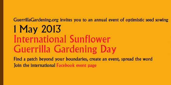 Seven years ago, guerrilla gardeners in Brussels decared 1 May the day for people all everywhere to go out beyond our gardens and plant sunflower seeds in the hope that they will bring beauty and health to our neighbourhoods.