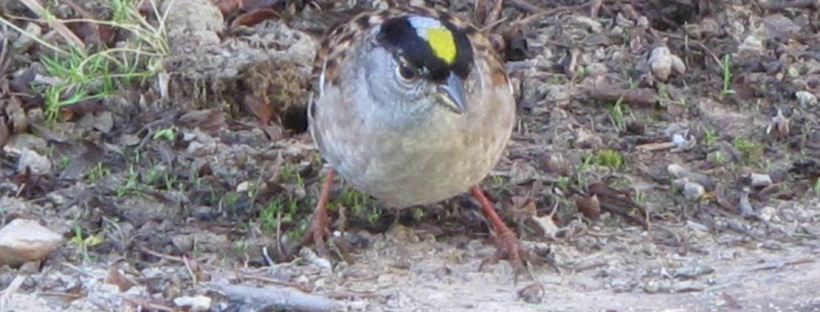 The Sparrows still come to the feeder, before they disperse to their nesting spots. This gives us a chance to take a good look at Golden-crowned Sparrows. As spring progresses, they move to higher grounds, where the hikers still see them in summer.