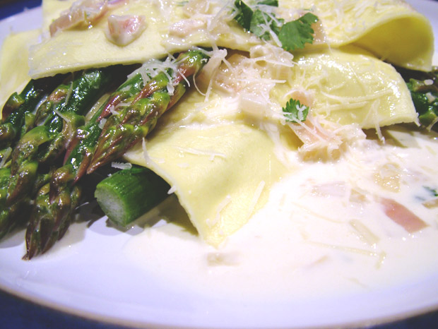 - Serve 3 sheets of pasta per person, layered up with the asparagus sauce.