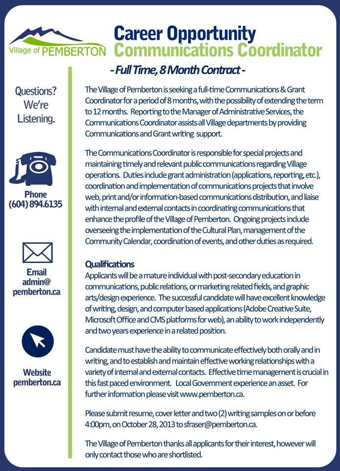 Job Opportunity: Contract Communications Coordinator