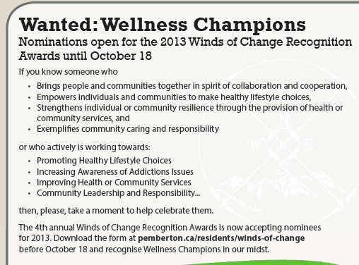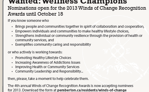 There are a few recognition awards in our communities: the chamber awards, the citizen of the year, the Lil’wat employee awards, even the Pique’s Best of Pemberton.