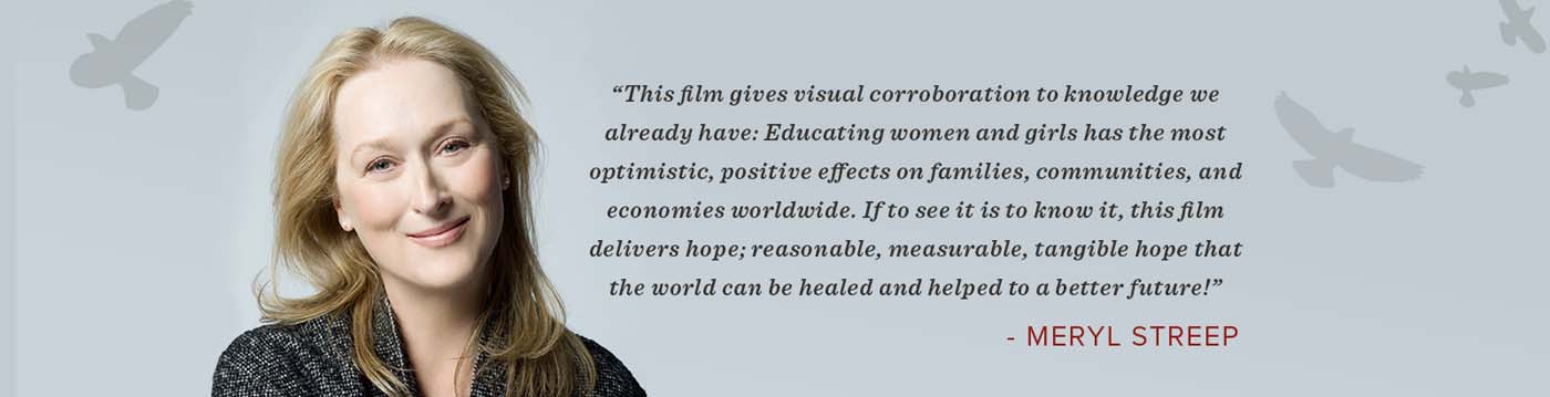 The film presents the remarkable stories of nine girls around the world, told by celebrated writers and voiced by renowned actors. It uses powerful storytelling to deliver a simple, critical truth: Educate Girls and you will Change the World.