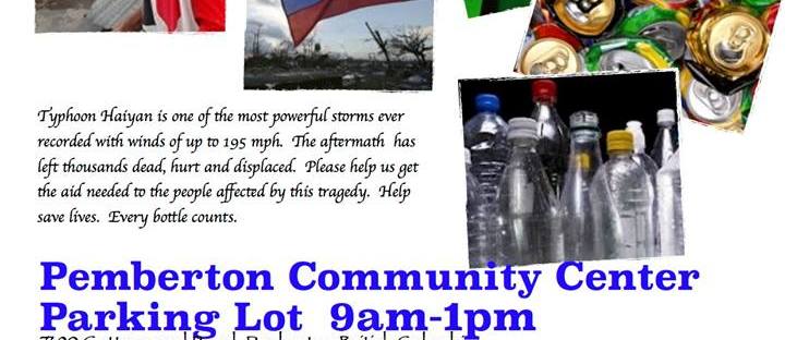 Save Your Empties! Bottle Drive Fundraiser for the Phillipines, Nov 23