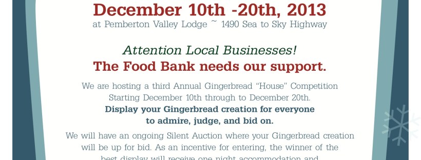 Event: Gingerbread Project for the Food Bank, Dec 10-20 November 29, 2013November 27, 2013 Share this: Share on X (Opens in new window) X Share on LinkedIn (Opens in new window) LinkedIn Share on Facebook (Opens in new window) Facebook Share on Pinterest (Opens in new window) Pinterest Email a link to a friend (Opens in new window) Email Share on Tumblr (Opens in new window) Tumblr Like Loading... Related Published by Lisa Richardson View all posts by Lisa Richardson