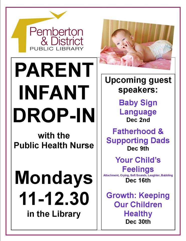 Parent Infant Drop-In, December Schedule December 7, 2013December 4, 2013 Parent Infant Drop-In is held every Monday morning in the Library from 11-12.30. Here’s a list of the topics being covered in December! Share this: Click to share on X (Opens in new window) X Click to share on LinkedIn (Opens in new window) LinkedIn Click to share on Facebook (Opens in new window) Facebook Click to share on Pinterest (Opens in new window) Pinterest Click to email a link to a friend (Opens in new window) Email Click to share on Tumblr (Opens in new window) Tumblr Like Loading... Related Published by Lisa Richardson View all posts by Lisa Richardson