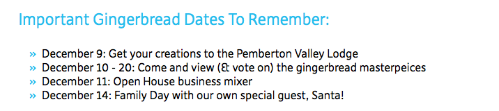 The two are nicely paired by the Pemberton Valley’s Lodge’s 3rd annual Gingerbread Project.