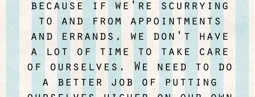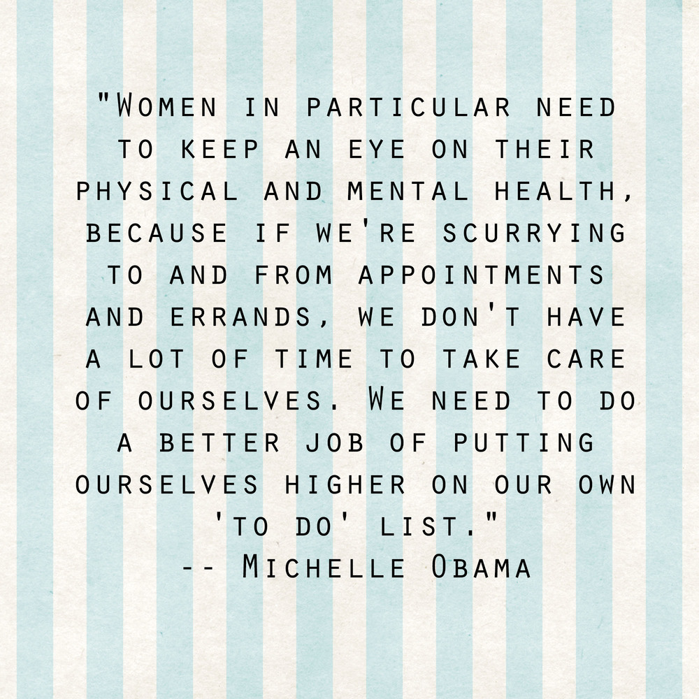 After connecting with Chief Lucinda Phillips about her hope to find more balance in 2014, I find this quote from First Lady Michelle Obama that struck a chord. A week into the New Year with most of my resolutions on the floor, it seemed worth circling back to this idea of making self care a priority. Not because “I deserve it”, but because accomplishing anything means getting well-grounded. And choosing to be well.