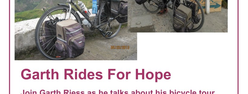 On Monday, February 24, at 7pm, the Pemberton & District Library will host a talk by Garth Riess about his bike tour from Pemberton to South America and to raise awareness of Guillain-Barre Syndrome.