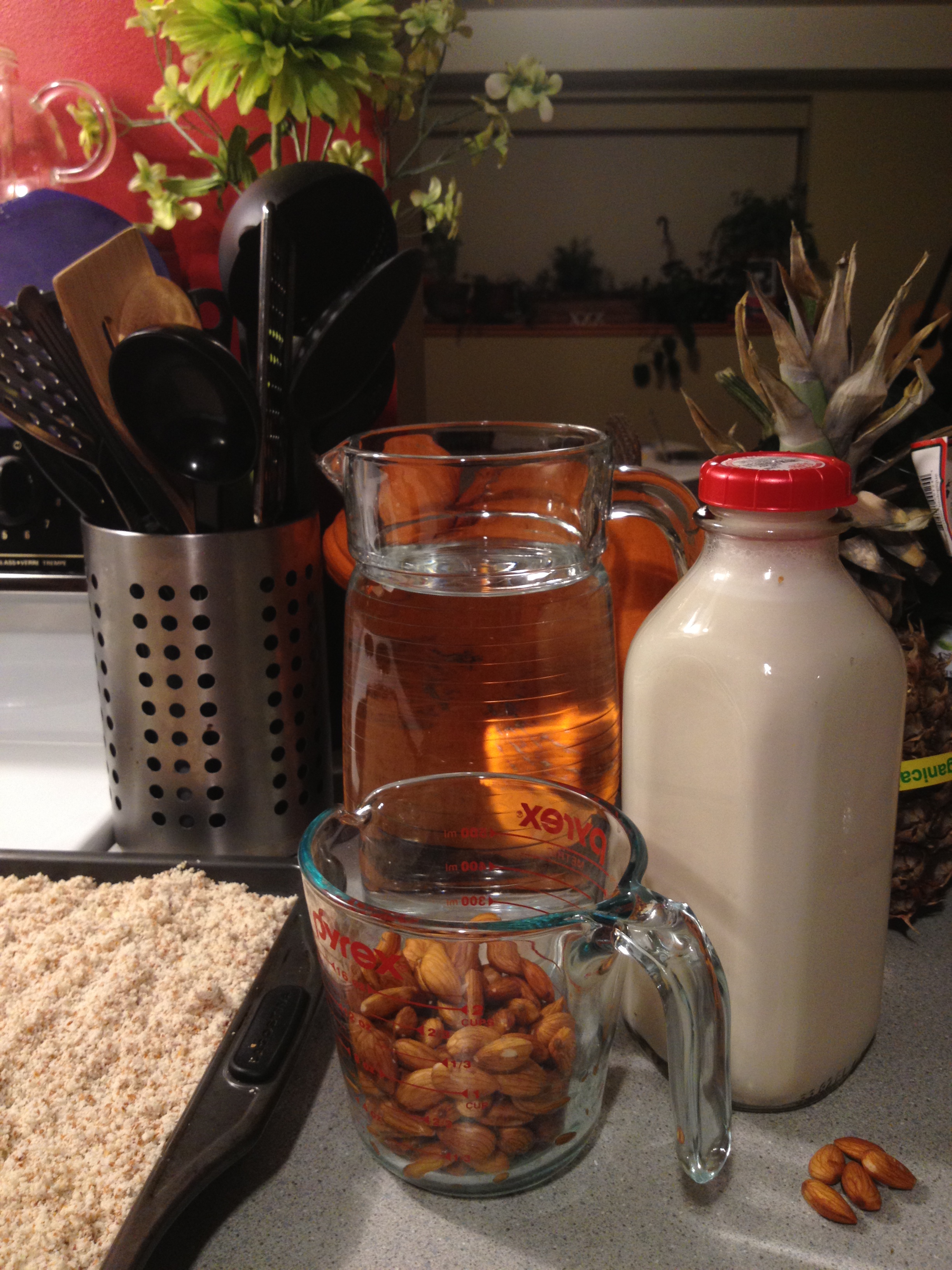 The advantage of making your own milk is that you know exactly what is going into it. There are no fillers or additives, and you can adjust the recipe to your own taste! Simply soak a cup of almonds (or other nuts) in water overnight. This removes much of the acid present in the skins. Then blend the almonds with 2 cups of water and a date or two for sweetness. Squeeze through a nut milk bag or cheesecloth and you have almond milk. The added perk is that you can make your own almond flour from the almond meal. It’s just that easy!