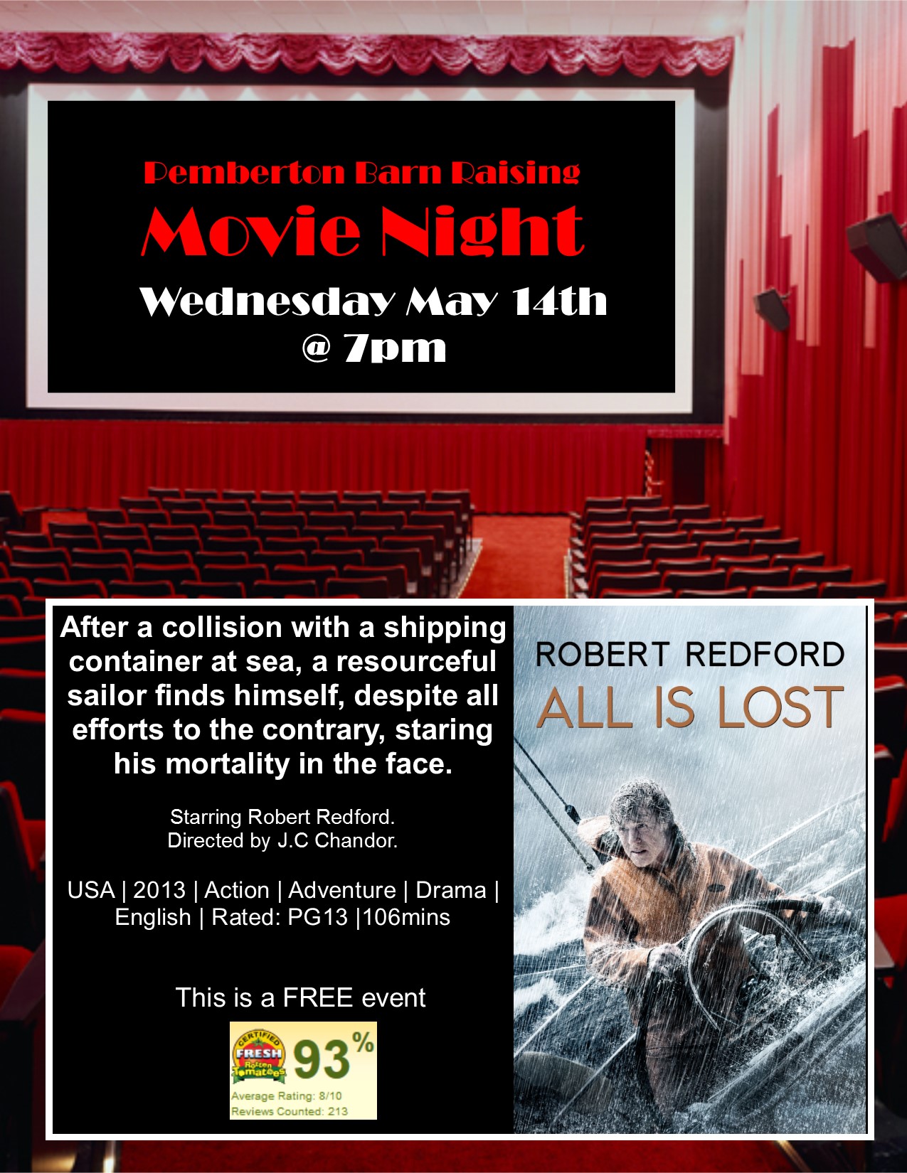 All is Lost starring Robert Redford will screen at 7pm on Wednesday May 14th.