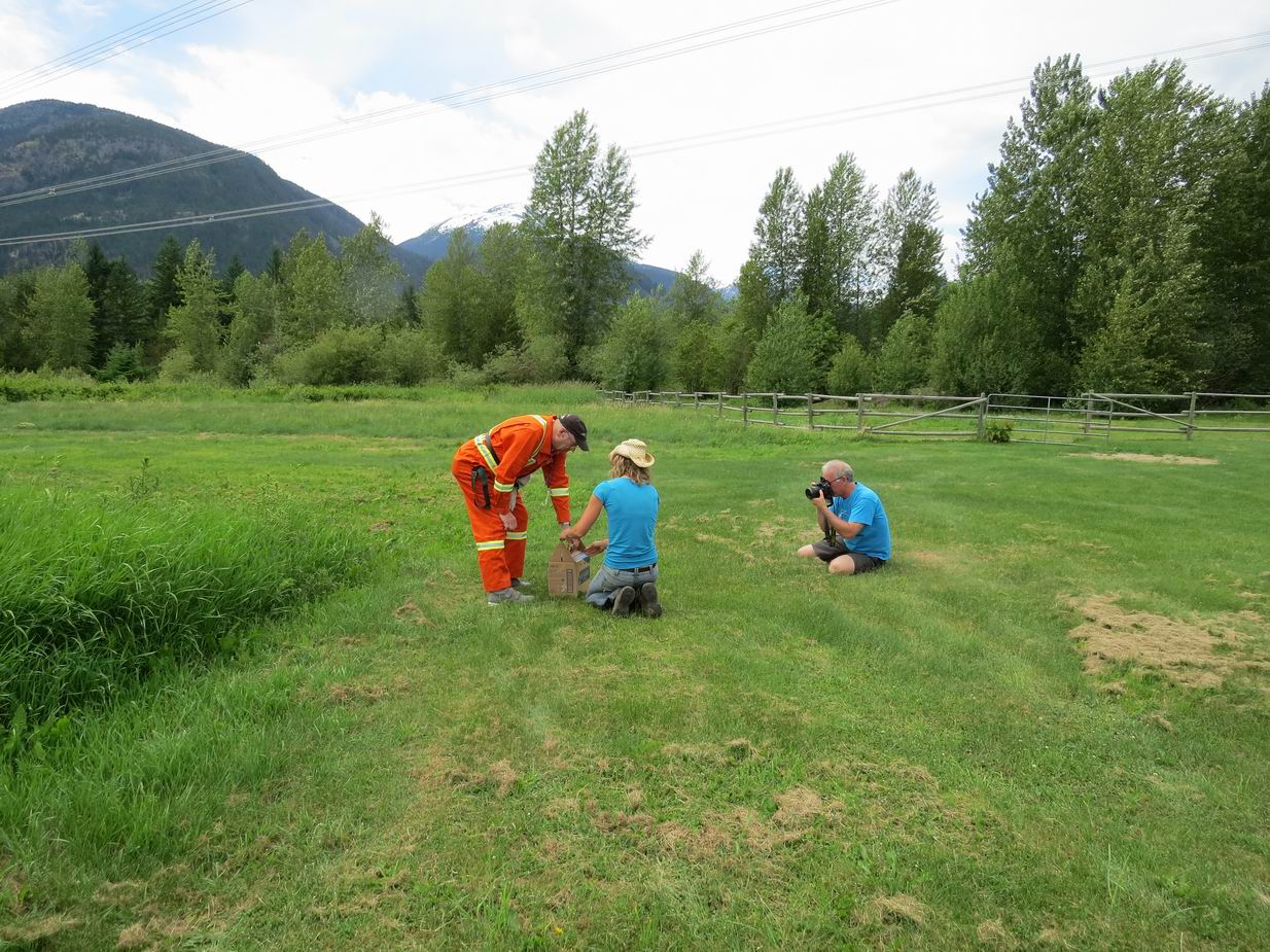 Do you remember the Prairie Falcon rescued November 2013 at Clover Road ? It spent the last six months at Owl Rehab Center at Boundary Bay. On Sunday it returned to Clover Rd. by helicopter. It did not need any encouragement to find its freedom. Within seconds of opening the box, it started circling and gaining altitude. After about three minutes it was so high, it disappeared from sight. We wish it good luck.