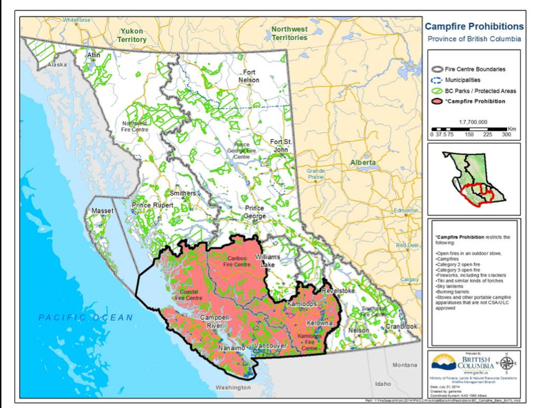 As of noon on Aug. 1, 2014, campfires are prohibited in the Coastal Fire Centre.