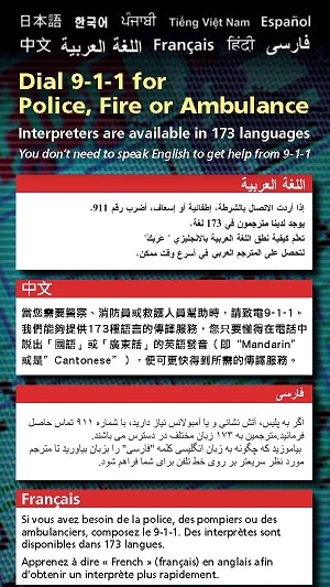 If English is not your first language or you have family or friends and you need to call 911 in the event of an emergency, E-Comm has access to a 24-hour interpretation service that can be connected to in less than a minute. Interpreters are available in 170 languages.