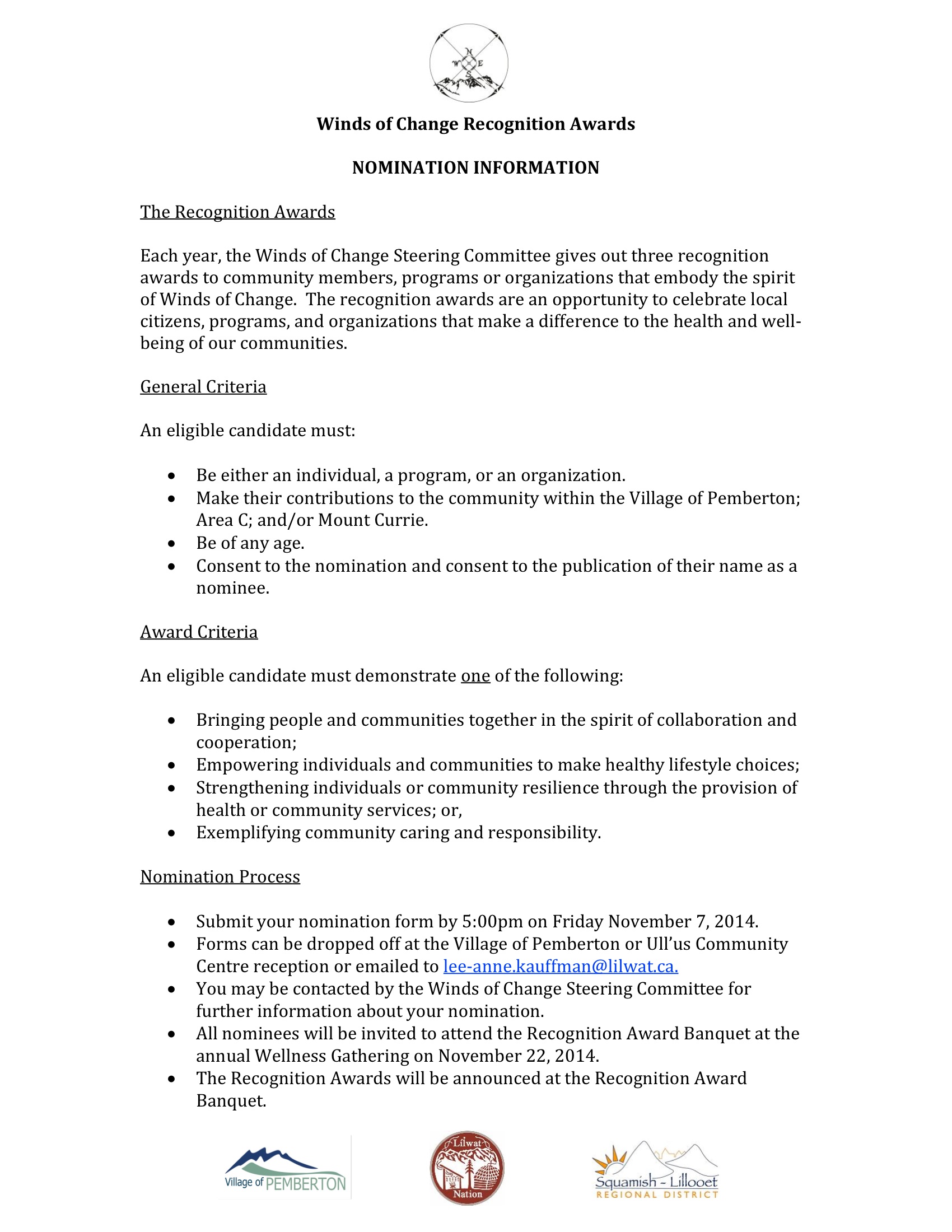 So, who is the Face of Wellness here in our communities? Who embodies the spirit of the Winds of Change? Who is working to make a difference to the health and wellbeing of our communities?