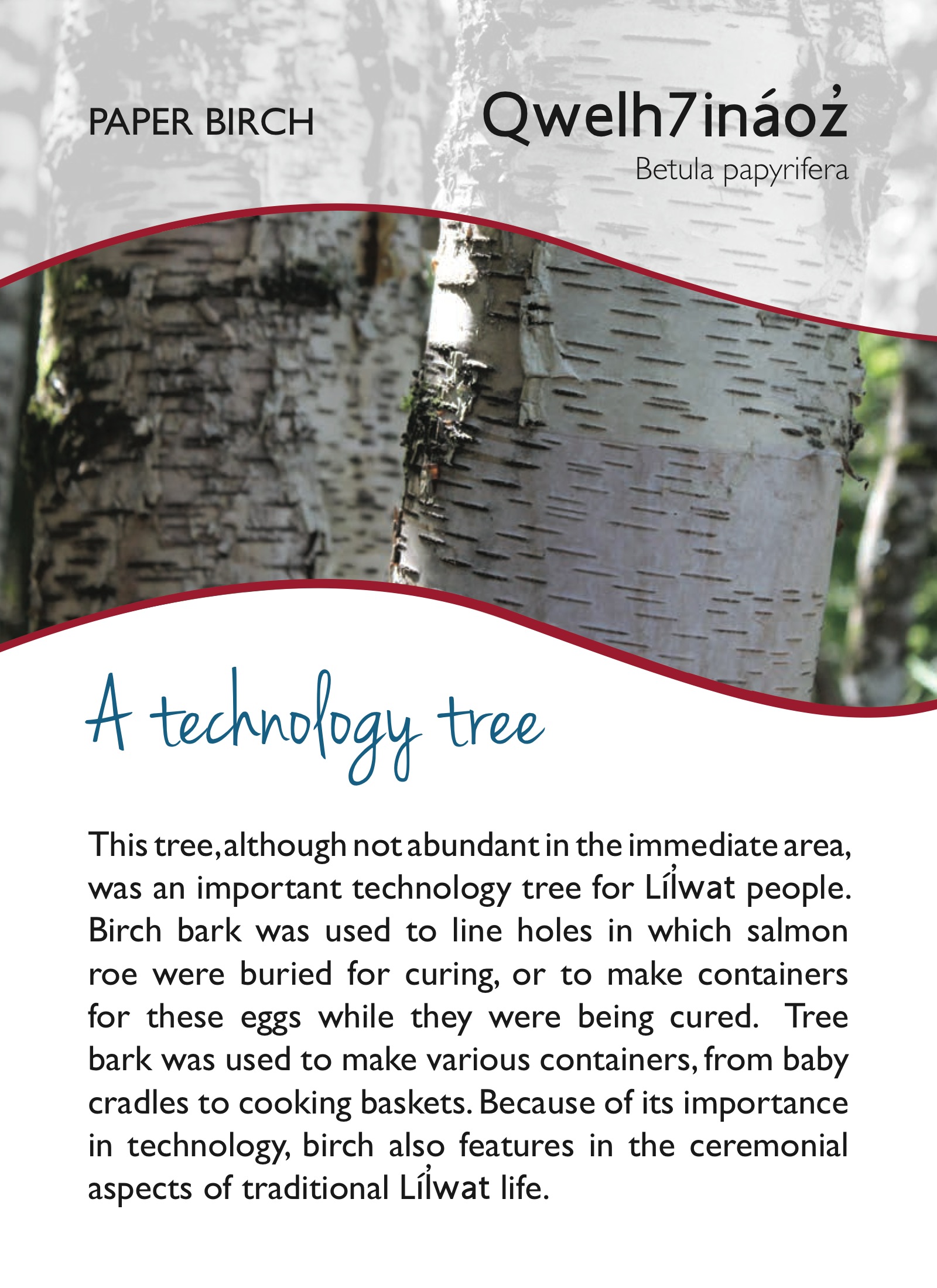 The paper birch was a technology tree for the Lil’wat Nation… making me realise that it’s not a question of Nature vs technology. All our technology comes from or is inspired by nature, really. It’s more about listening. And paying attention. Some tools help us do that. And some get in the way. And some do both, or either, depending on the day.