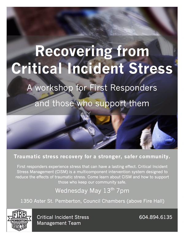 Tonight, at the Council Chambers above the Fire Hall, a session on Critical Incident Stress Management, will take place at 7pm.