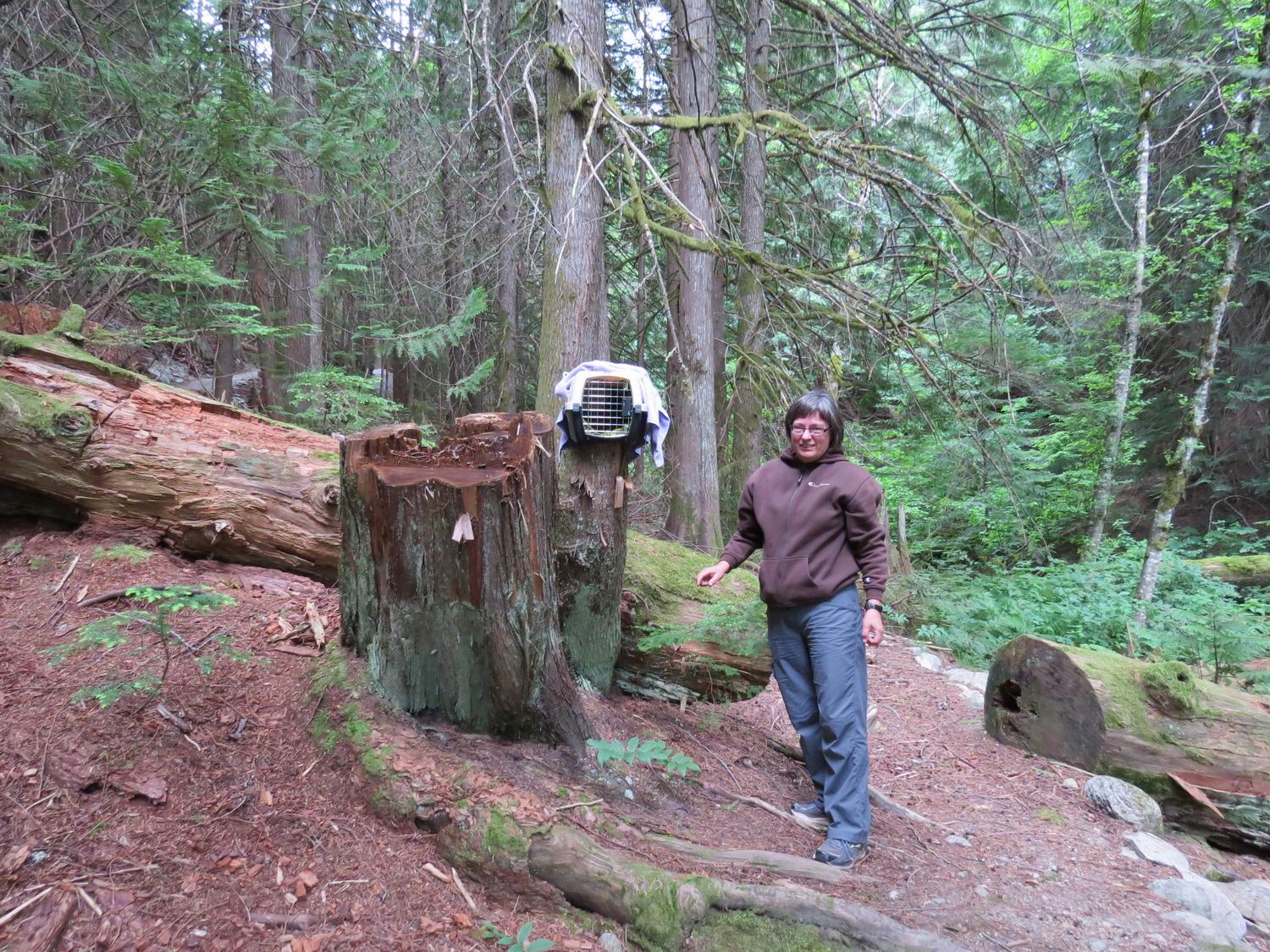With the help of Brenda Lloyd and others it spent some weeks at Owl Rehab in Delta. Last week it was found to be fit for release. It was in a hurry to turn its back to its caretakers. Barely got a picture.