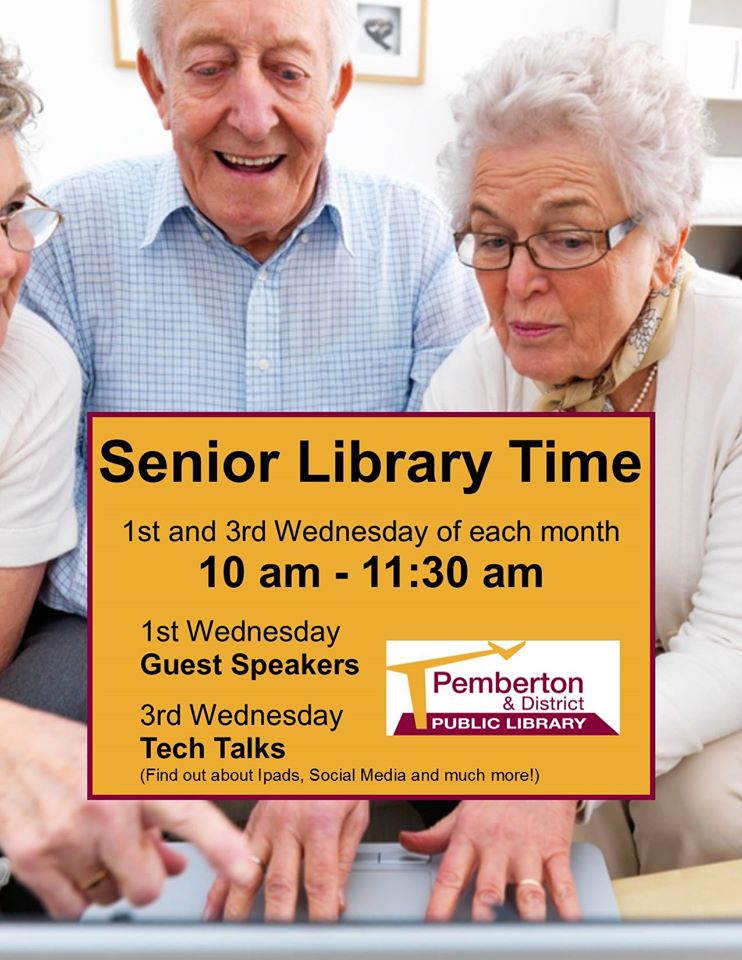 “Seniors Tech Talk” is held in the Library on the third Wednesday of the month at 10am.