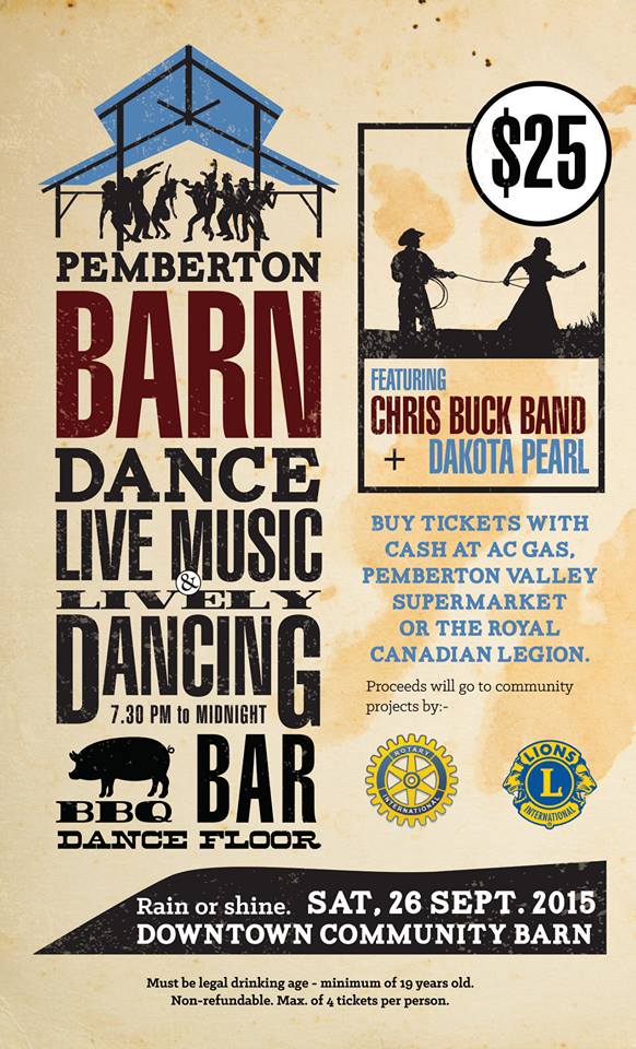 It’s a community tradition, and it’s returning after a 3 year hiatus. Rain or shine, at the Downtown Community Barn, this Saturday, the Pemberton Barn Dance, annual community fundraiser, shindig and celebration, raising funds for Rotary and Lions Club projects.