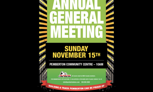 Pemberton BMX’s AGM is on Sunday, 10am at the Community Centre