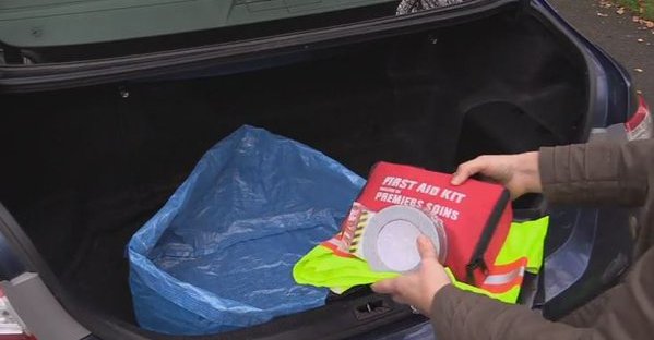 It’s not one of my proudest moment, but it is one way of saying, why not have a little emergency kit in the back of your car, just in case the inevitable happens.