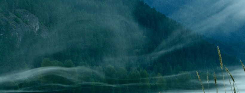 Up by the Lillooet Forest Service bridge, the fog swirls in imitation of the river flowing next to it.