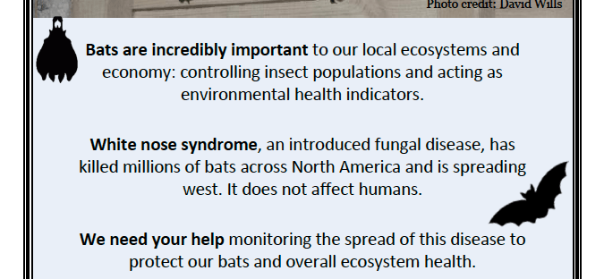 If you find a dead bat, see bat activity or know of a bat roost, let them know: info@bcbats.ca, wildlife@pembertonwildlifeassociation.com or call Greg at 604 349 4750.