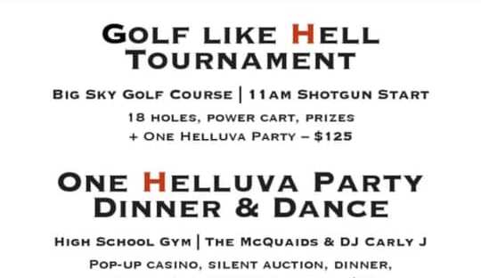 The event starts with a golf tournament during the day at Big Sky (11:00am shotgun start), and then a dinner/dance at the high school, complete with a band, DJ, casino, silent and live auction, and of course dinner.