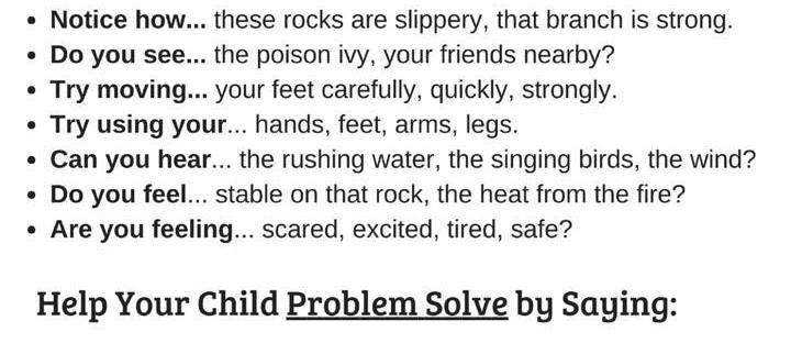 I’m a bit obsessed with the idea of being a problem-solver these days, and encouraging that mindset in my kid, so when this popped up on my feed, offering alternatives to that mom-reflex-standby of “watch out! be careful!”, I clicked. I love the way these questions invite a kid to stay in their experience, instead of shying away from it, but to engage different parts of their brain and body…