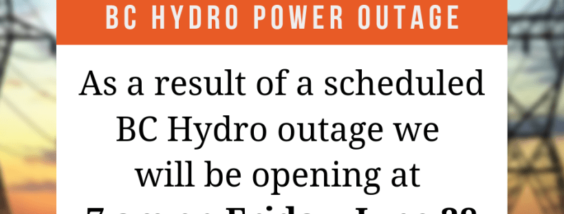 A 30 minute power outage, planned by BC Hydro, will cause a delay in opening at the Pemberton and District Community Centre until 7am.