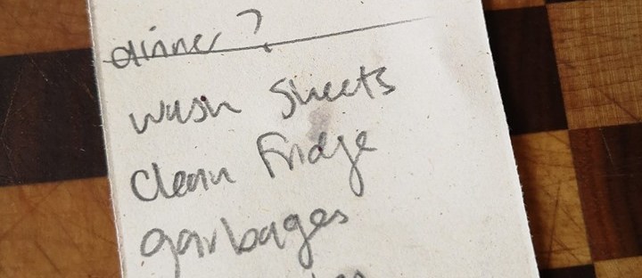 My to-do list today. The only thing checked off was dinner. I ‘almost’ got the sheets in the wash, but I had towels that needed it more, and I didn’t have time for both loads.