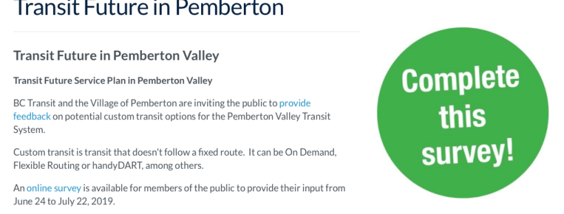 BC Transit and the Village of Pemberton are inviting the public to provide feedback on potential custom transit options for the Pemberton Valley Transit System.