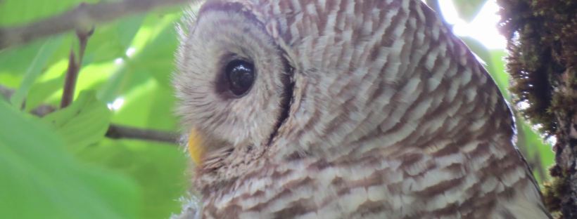 Barred owl visiting Pemberton, July 2019. Photo by John Tschopp.