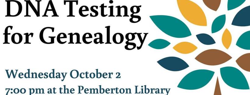 The Library is hosting an information seminar on DNA testing for Genealogy, on Wednesday, October 2, 2019 at 7 PM – 8:30 PM