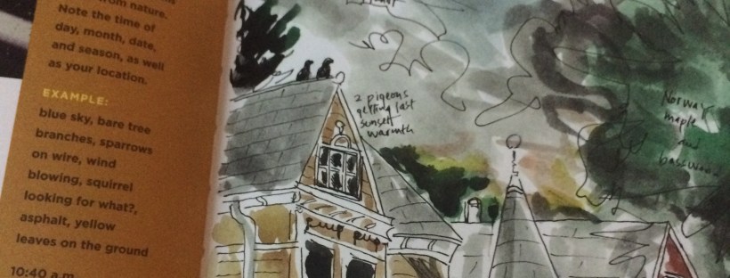 In it, she suggests giving one minute of your attention a day to Nature. Begin where you are. Right now. Look up, look out, go outside. Count to five and watch what’s going on. “Forget where you need to be and where you have come from.” And then, list six or seven nature observations that you see, hear or feel. Just notice.