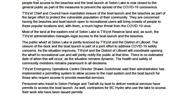 So please be understanding and supportive of the initiatives being put into place to protect community members from the spread of COVID19. Isolation, for some First Nations communities in our region, has been one of the hurdles they’ve add to manage, restricting access to jobs, services, stores – a lot of the benefits most of us take for granted. Now, it also could be a protective factor for them. Let’s not take that away, with our desires to recreate, go boating, get out on the lake.