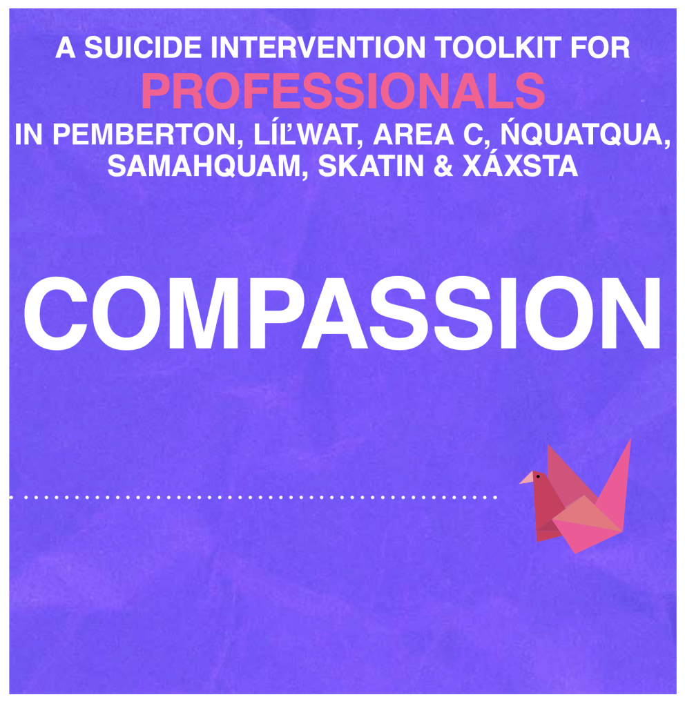 If you’re concerned for someone’s well-being, the Pemberton Local Action team of the Child and Youth Mental Health and Substance Use Collaborative (CYMHSU) created several Suicide Intervention Toolkits, for youth, professionals, and parents and care-givers.