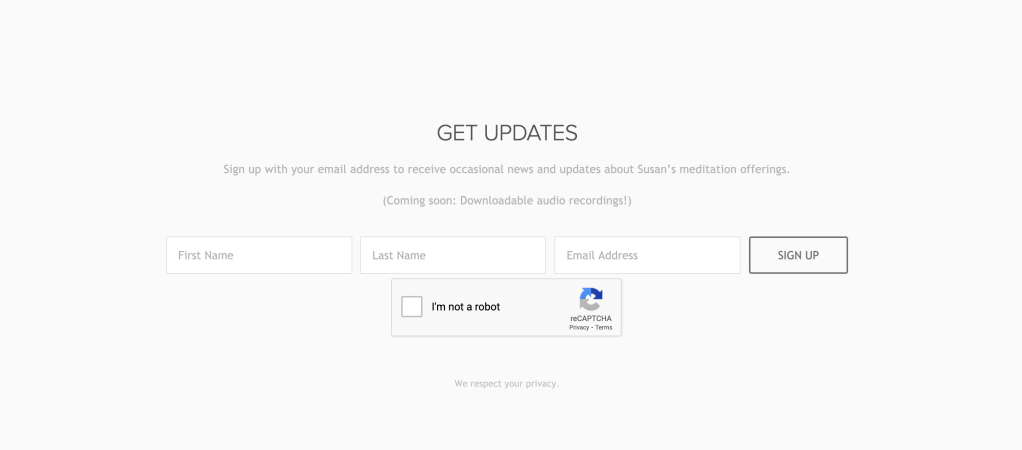 Which is why, every time a new release of meditation sessions pings into my inbox, I jump straight over here to share it. (Sign up for Susan’s newsletter here, so you don’t miss the dates!)