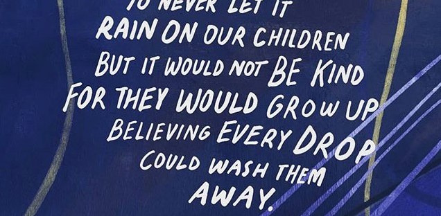 As she so beautifully said, “It would be easier to never let it rain on our children, but it would not be kind, for they would grow up believing every drop could wash them away.”
