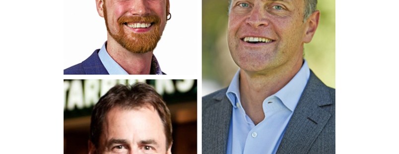 the NDP’s Keith Murdoch, Green candidate Jeremy Valeriote, and current MLA, Liberal Jordan Sturdy.