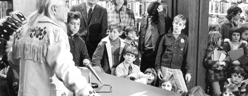 Chief Dan George addresses a group of children at Lynn Valley Library in 1971. This column written by George in 1972 appeared in the North Shore Free Press, an early iteration of the North Shore News. PHOTO SuppliedBrotherhood and Understanding: Thoughts by Chief Dan George