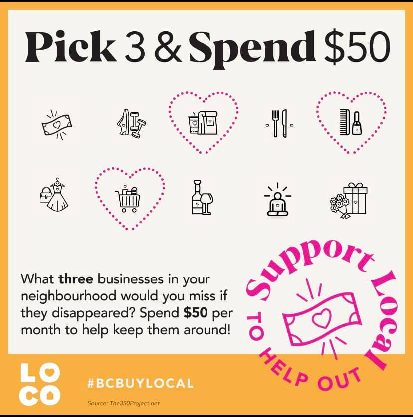 The Chamber of Commerce shared this #BCBuyLocal suggestion, and I love it for its simplicity. Show up for who you love and what you love.